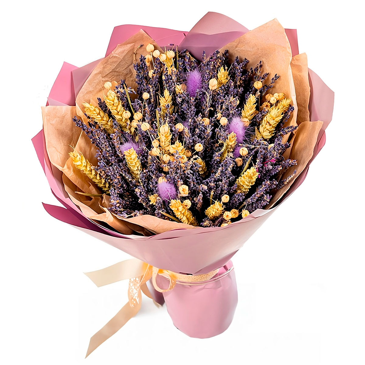 Лагурус, лаванда, пшеница. Упаковка (лента, пленка, крафт, сетка, пленка матовая)