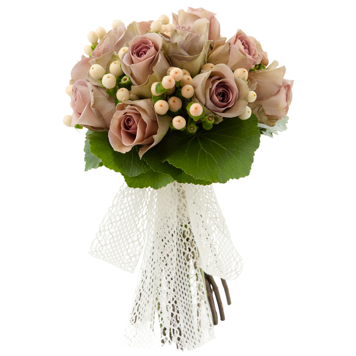 Роза одноголовая капучино, гиперикум, зелень. Упаковка (лента, пленка, крафт, сетка, пленка матовая)