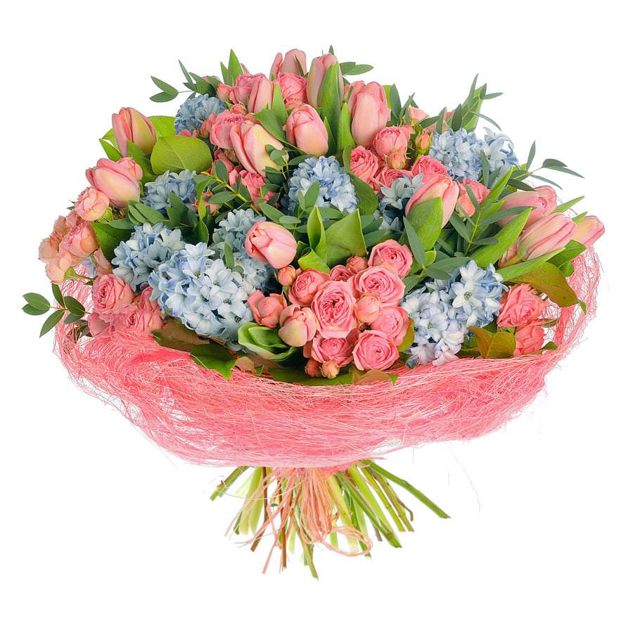 | Состав | Гиацинты, Кустовые розы, Розы, Тюльпаны, Эвкалипт |