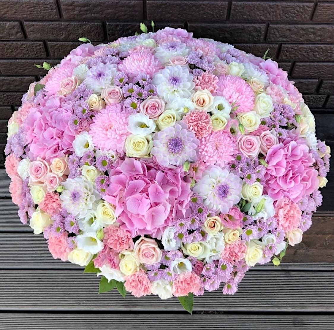 | Состав | Гортензии, Пионы, Роза мисс пигги, Розы, Эвкалипт, Эустомы |