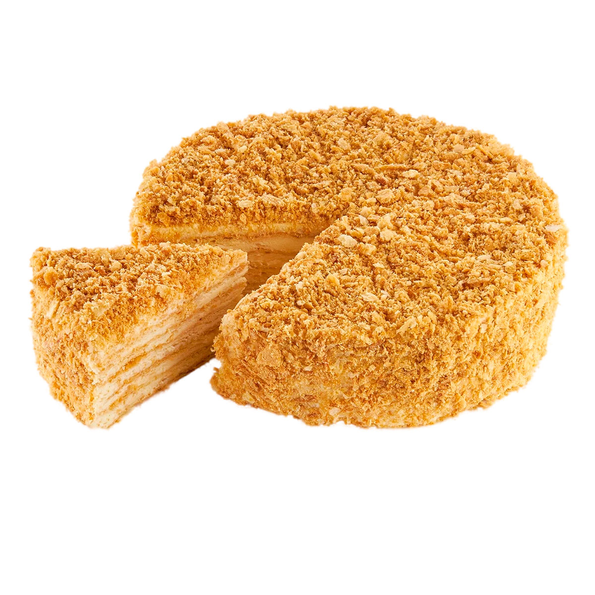 Торт «Наполеон» — это изысканный десерт с богатой историей, который порадует своим неповторимым вкусом. Этот торт состоит из множества слоев тонкого и хрустящего слоеного теста, чередующихся с нежнейшим кремом на основе сливок и сливочного масла. Посыпка из растертого теста на верху добавляет торту характерную текстуру и визуальную привлекательность. Торт «Наполеон» — это идеальный выбор для любого торжества, будь то день рождения, свадьба или праздничный ужин. Это более чем десерт, это кулинарное произведение искусства, которое доставит вам истинное наслаждение.