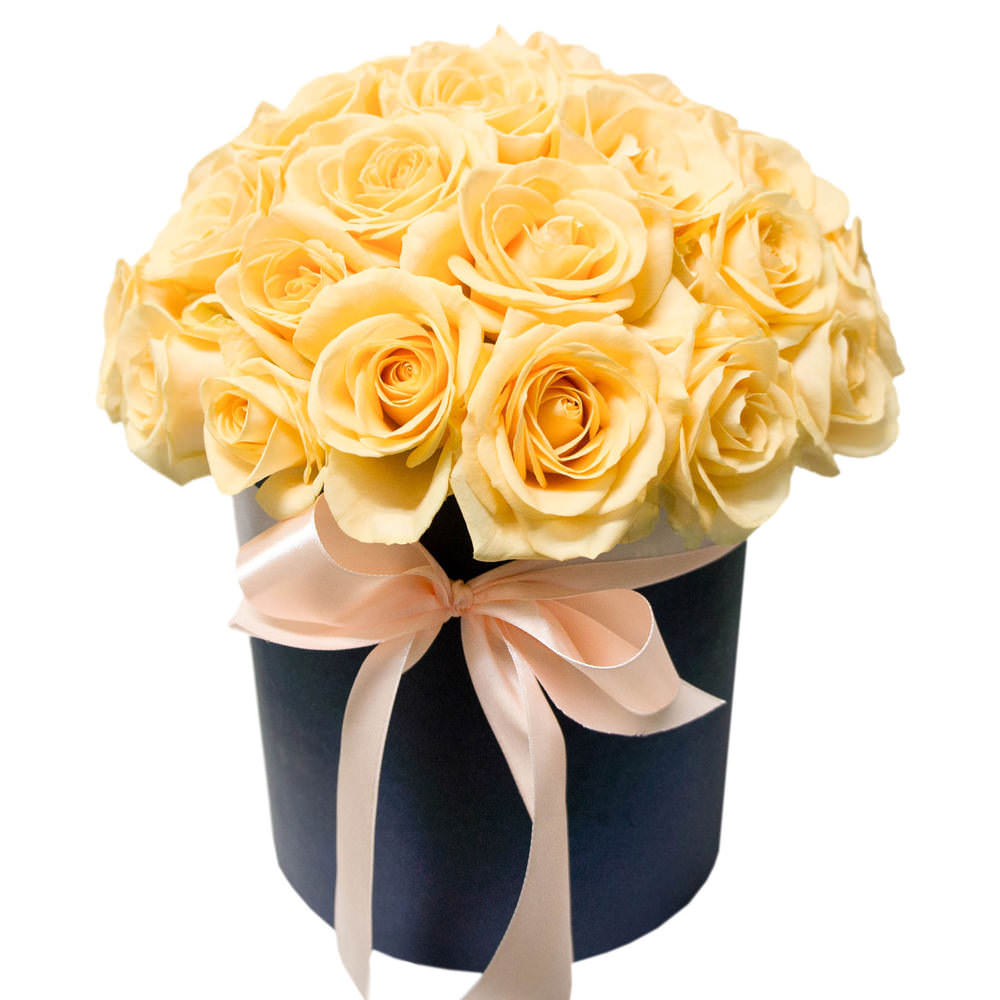 Цветы в коробке «Кремовые розы» с доставкой по г Малоархангельск: вы можете купить букет в цветочном супермаркете «Флормания» по цене от 2890 руб.