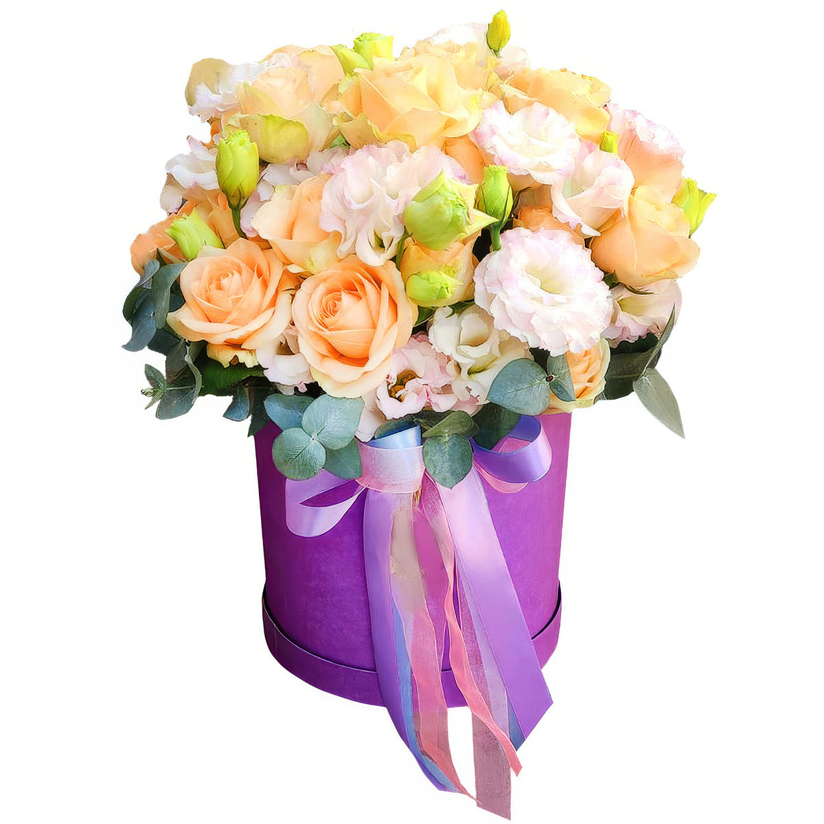 Роза кустовая пионовидная. Упаковка (шляпная коробка, квадратный бокс, коробка сердце, оазис)