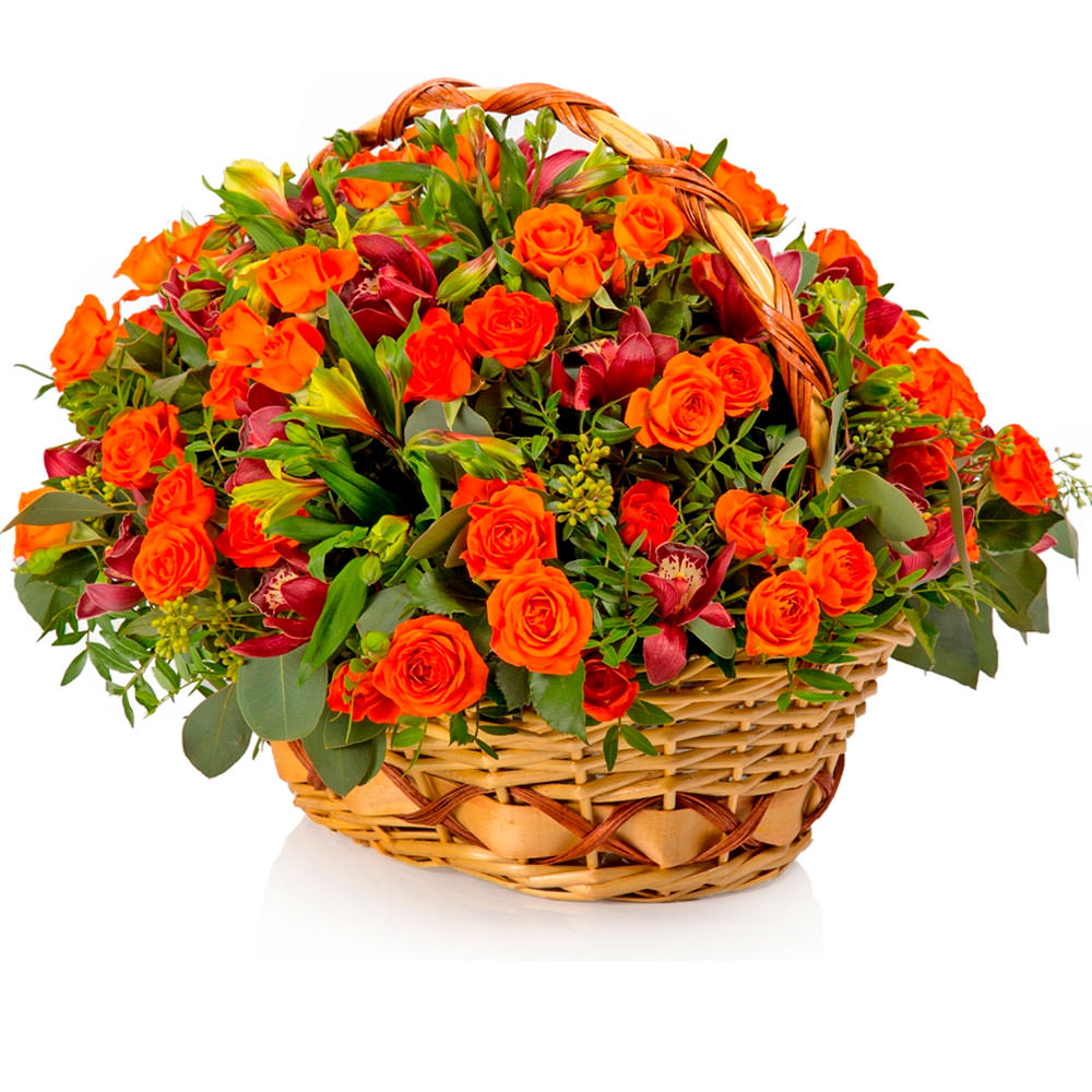 Цветы в корзинке «Алый закат» с доставкой по г Малоархангельск: вы можете заказать букет в цветочном супермаркете «Флормания» по цене от 3190 руб.