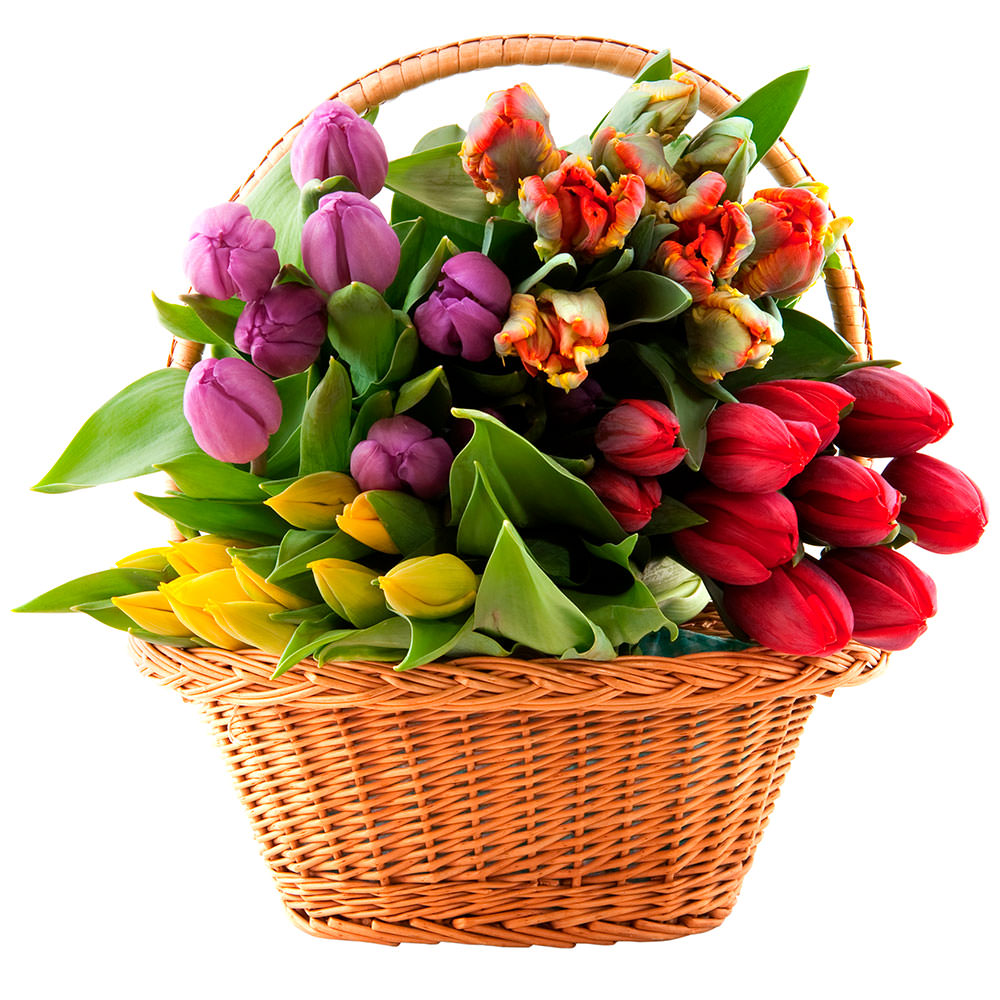 Цветы в корзинке «Микс тюльпанов» с доставкой по г Малоархангельск: вы можете купить букет в цветочном супермаркете «Флормания» по цене от 3190 руб.